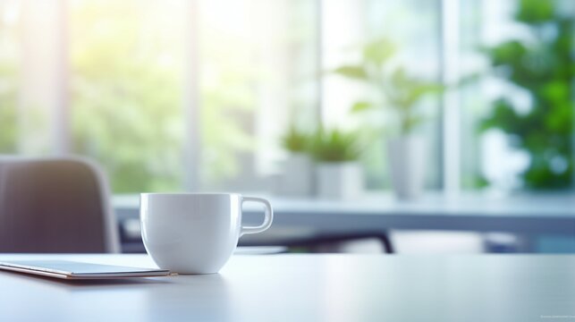 Minimalist futuristic lobby with walking blurred woman and ambient led lighting
