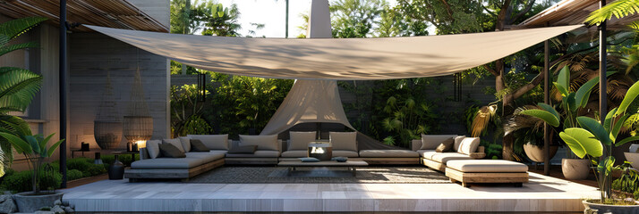 Shaded Oasis: A cozy outdoor seating area with a misting system or shade canopy, offering a cool retreat from the blazing sun.