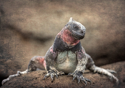 Galápagos Marine Iguana (Amblyrhynchus cristatus) - Stylized Background - 6964