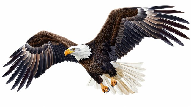 Bald eagle (Haliaeetus leucocephalus) , flying in motion and in landing position isolated on transparent and white background