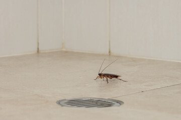 cockroach infestation in the kitchen, insects on the floor without hygiene, need for cleaning, detection at home