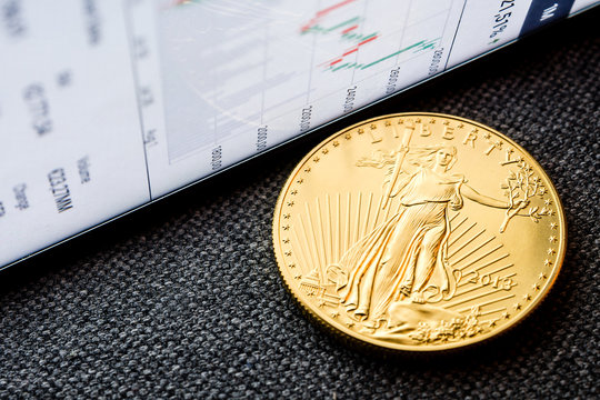 Stack of american gold coins background. US half Dollar coin with eagle. Concept of a stable banking system and economy.