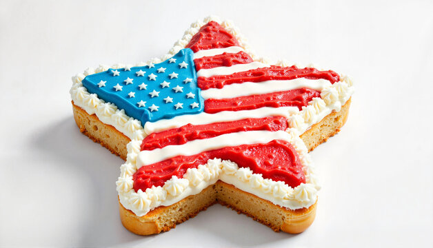 Star-shaped cake with American flag icing decoration