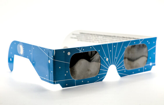 eclipse glasses (disposable paper nd filters for looking at the sun during solar events) isolated on white background shades eye protection from bright light uv