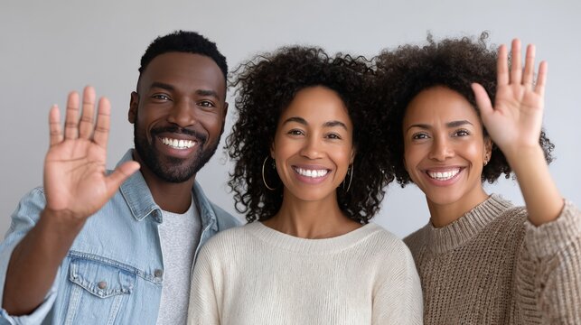 Smiling african adults waving in casual attire