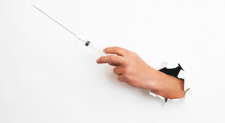 Syringe for intrauterine infections and tonsillectomy in hand on a white background. Syringe for washing the tonsils with nozzles.