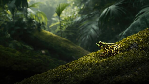 Portrait of a frog in water camouflage, amphibian survival adaptation, Earth Day