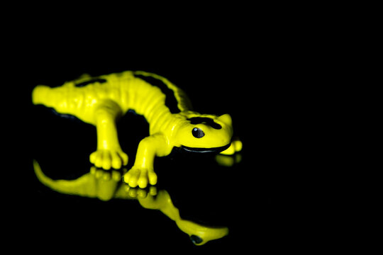 Dyeing poison dart frog isolated PNG, vibrant blue and yellow amphibian with black spots on transparent background, exotic pet