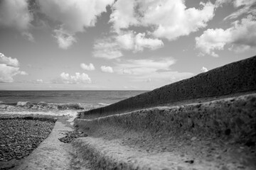 Greyscale view of the Amroth Concrete Beach ramp, United Kingdom