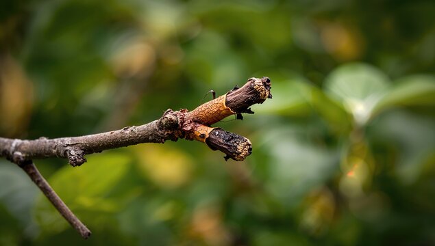 A withered pear branch, showing signs of Fire blight infection, showcasing the risk of plant diseases