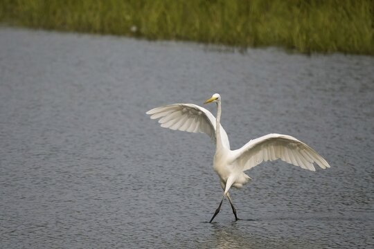 Great egret (Ardea alba) fishing, fishing, Hesse, Germany