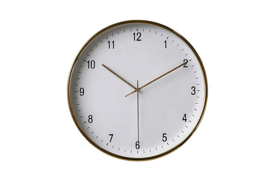 School analog clock on tile wall in hallway shows time. Educational institution indoors, classroom time management, discipline, learning schedule. Interior design elements, architecture concept shows