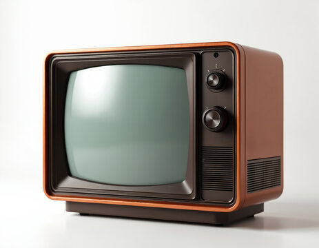 vintage television set retro design isolated on white background old technology antique screen blank display