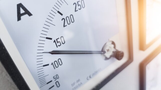 Industrial electric meter scale needle, electric current measuring instrument, for industrial electricity background.
