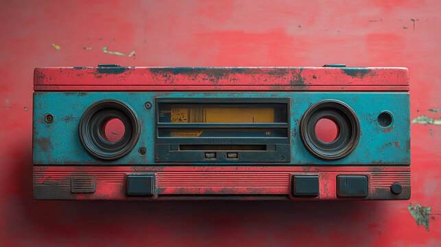 Vintage retro portable radio cassette recorder isolated on white background.