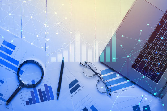 Digital financial analysis in modern office environment