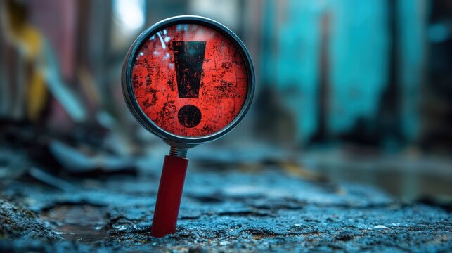 Urgent Alert: Magnifying Glass with Exclamation Mark in a Desolate Setting