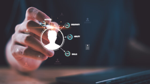 Unique Talent Selection Concept, Finger Pointing at a Yellow Figure Among Others, HR, Personal Selection, Artificial Intelligence in Hiring, Leadership Potential Assessment, Corporate Team Building