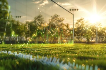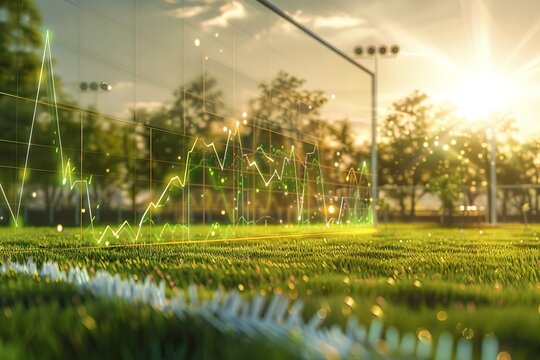 Abstract visualization of financial data and stock market analytics with dynamic line graph in a digital landscape.