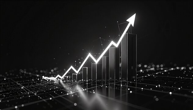 A striking black and white photograph showcasing a sharply ascending graph, emphasizing growth and progress with bold lines and clear data points.