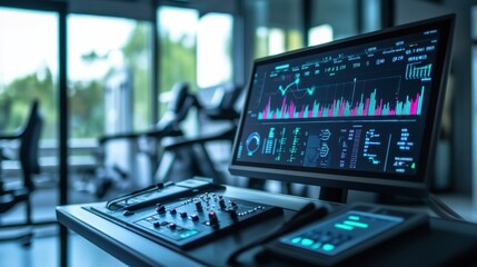 Futuristic interface with data analytics and graphics