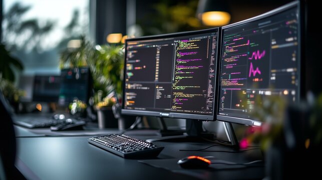 Coding session in modern office technology hub digital content urban environment programmer's perspective