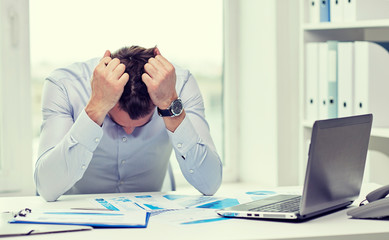 Stressed senior man analyzing paperwork at desk