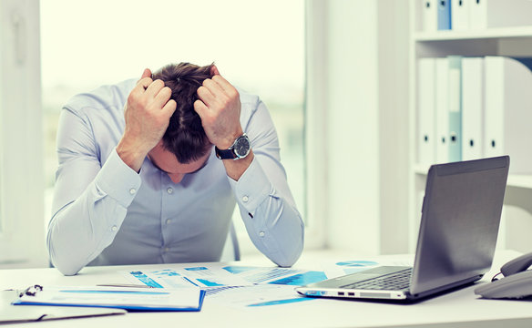Overworked professional feeling stressed in modern office