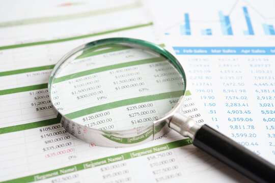Magnifying glass on charts graphs paper. Financial development, Banking Account, Statistics, Investment Analytic research data economy.