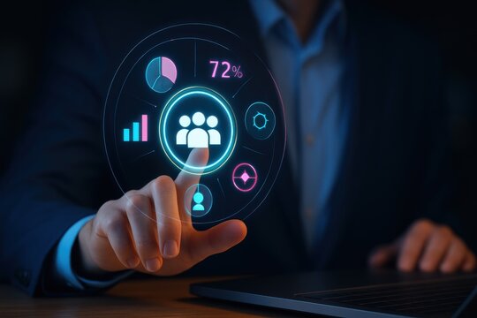 Futuristic hud interface with glowing radial dashboard, holographic data grid and circuitry