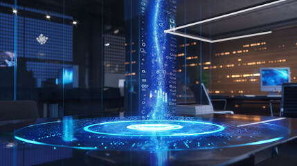 Abstract digital interface with data analytics in modern office