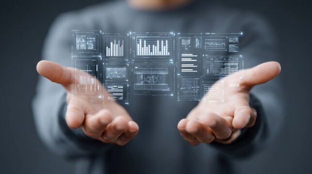 Futuristic data interfaces with digital analytics visuals