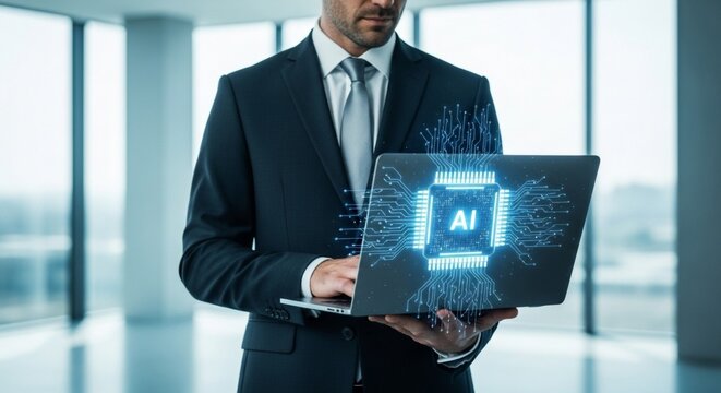 Business Professional Using Laptop with Artificial Intelligence Technology.