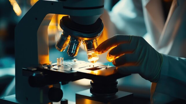 Close-Up of a Scientist Using a Microscope in a Laboratory