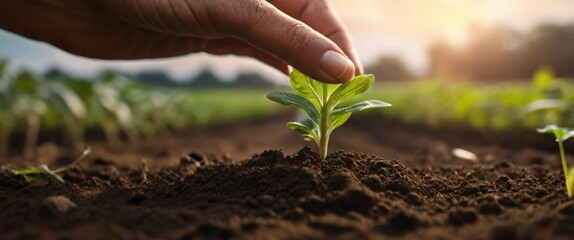 Expert hand of farmer checking soil health before growth a seed of vegetable or plant seedling, Business or ecology concept, analyze complex data sets in real-time, with a digital interface overlaid o