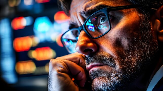concerned businessman analyzing stock market data