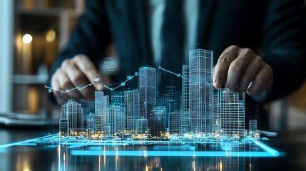 Financial growth analysis business environment data visualization urban setting high angle view economic insights