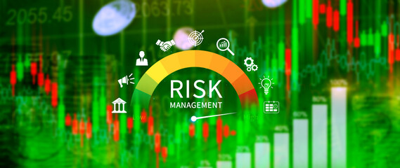 RISK concept, analyzing risk and opportunities to planning business via risk level indicator virtual rating low to high digital virtual, Risk management strategies concept.