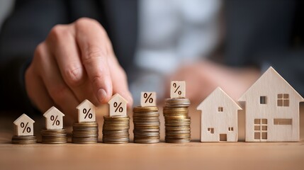 Businessman analyzing mortgage interest rates, housing price growth trends. Concept: Interest rates, mortgage loans, real estate market analysis, economic growth inflation, macroeconomics, income, pro