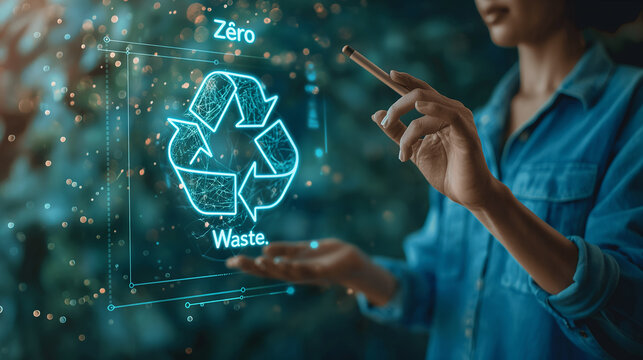 Businesswoman using digital hologram with zero waste icon