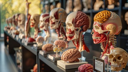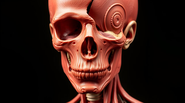 Scene featuring a detailed skeletal model, focusing on the skull and its various structures
