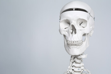 Human medical skeleton on the white background.