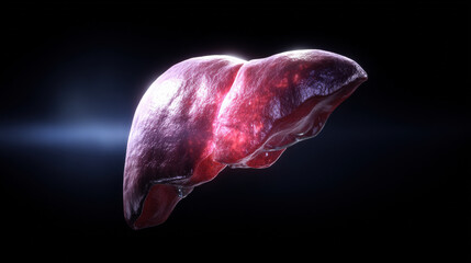 realistic 3D render of human liver isolated on dark background with soft rim light educational medical illustration illustration concept scene visual for commercial design use high detail quality