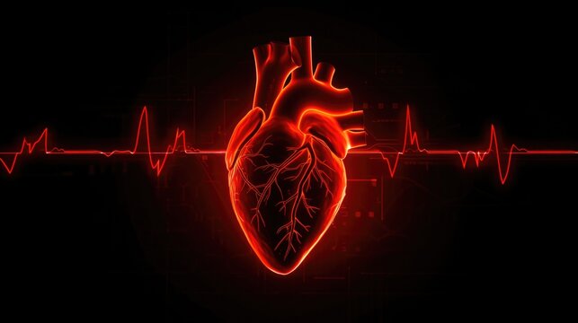 Human heart with red cardiac pulse line.