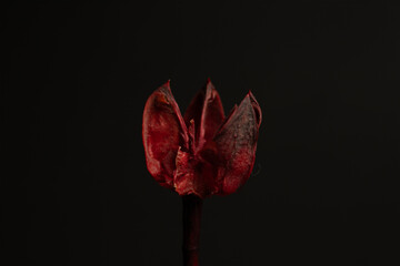 Macro view of vibrant red tulip in bloom