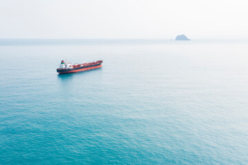 Large Red and Black Oil Tanker in Calm Bay