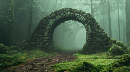 Freestanding brick archway featuring semicircular opening and rich textured masonry