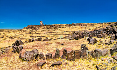 Sillustani, a pre-Incan cemetery on the shores of Lake Umayo near Puno in Peru