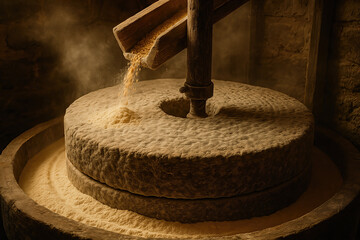 Flat Lay of Fresh Raw Spelt Flour on a Plate with Powdery Texture. Generative AI