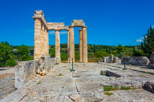 Ruins of temple of Zeus at ancient Nemea complex in Greece